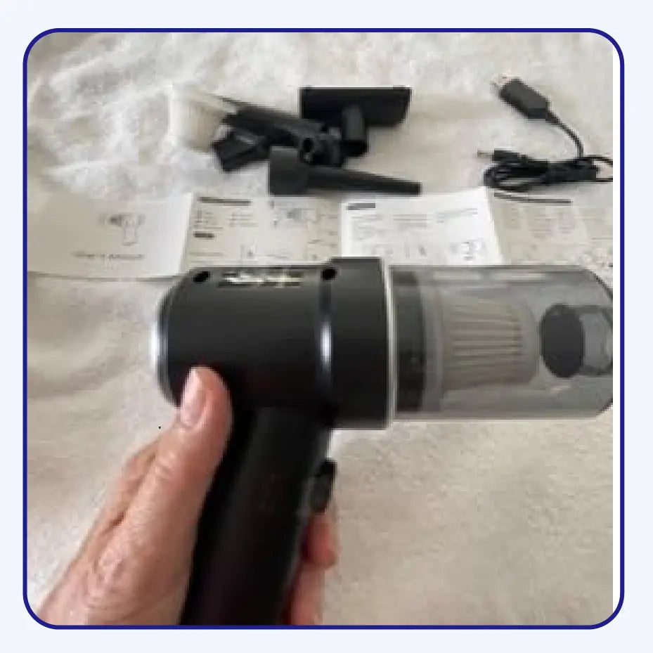 Con nuestra aspiradora portátil, podrás disfrutar de un espacio más limpio y ordenado sin esfuerzo. Su tamaño compacto y su gran potencia la hacen ideal tanto para tu coche como para tu hogar.