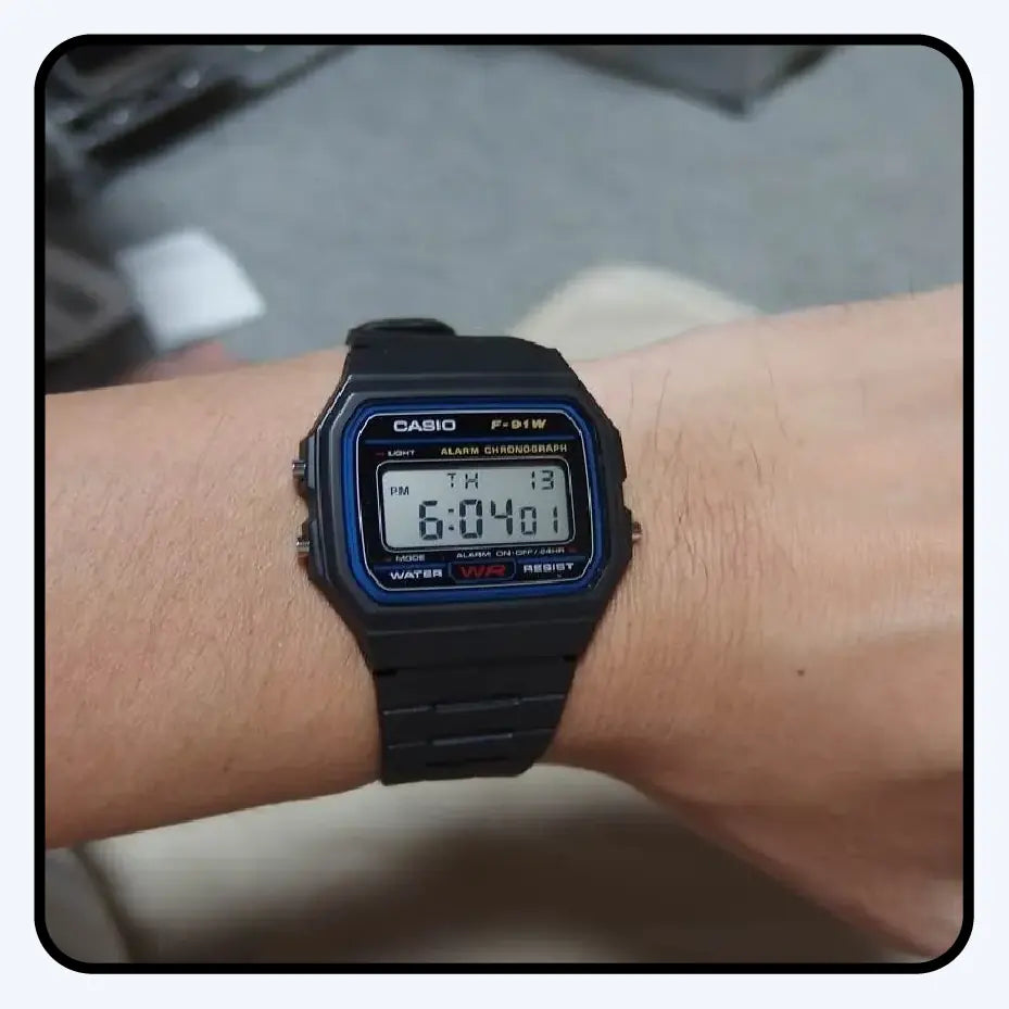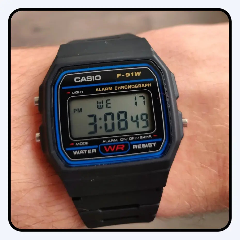 Con el Casio F-91W pasas de no saber ni la hora a llevar un clásico de la cultura pop en tu muñeca. Te conecta con estilo, funcionalidad y una historia icónica... por menos de lo que imaginas.